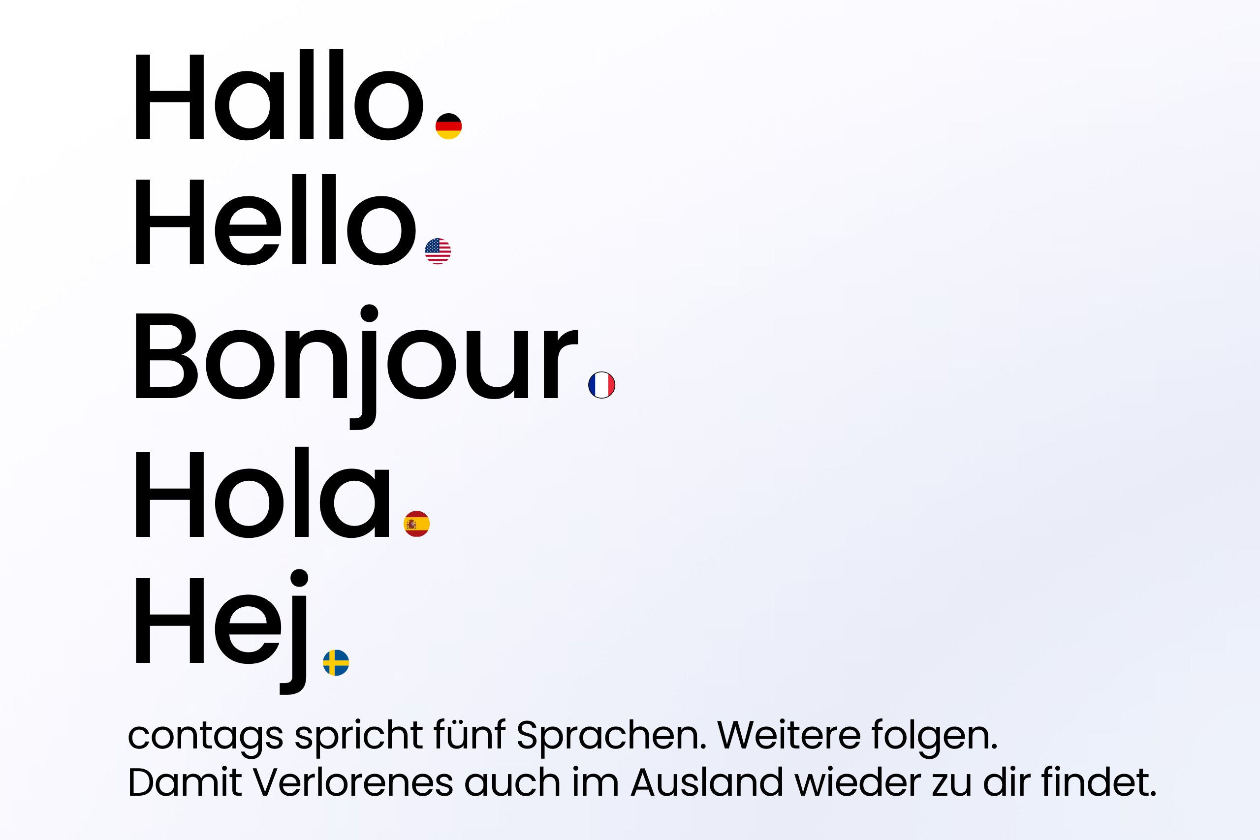 Sicher reisen: contags spricht fünf Sprachen! (Deutsch, Englisch, Spanisch, Französisch, Schwedisch)